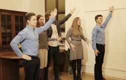 Wystawa ma na celu prezentację dorobku artystycznego Teatru Rapsodycznego w Krakowie, między innymi poprzez ukazanie znakomitego repertuaru tej Sceny. Pokazuje związki Karola Wojtyły z teatrem, jako aktora, przyjaciela zespołu oraz recenzenta. Ekspozycja bazuje głównie na zasobach Archiwum Narodowego w Krakowie. Są to zdjęcia, afisze, plakaty i projekty kostiumów. Wernisaż wystawy uświetnił występ studentów II roku Państwowej Wyższej Szkoły Teatralnej im. Ludwika Solskiego w Krakowie pod kierunkiem byłego aktora Teatru Rapsodycznego – prof. Tadeusza Malaka. Młodzi adepci sztuki scenicznej zaprezentowali fragmenty „Beniowskiego” – znakomitej pozycji repertuarowej Rapsodyków.Teatr Rapsodyczny był konspiracyjnym teatrem założonym w Krakowie w 1941 r., pod kierownictwem Mieczysława Kotlarczyka. Przez cały okres swojego istnienia konsekwentnie wcielał w życie ideę teatru narodowego, odwołującego się do najlepszych tradycji literatury polskiej i światowej. W momencie ostatecznej likwidacji teatru w 1967 r. dokumentacja powstała w trakcie jego działalności trafiła do krakowskiego Archiwum, które obecnie może poszczycić się największą kolekcją archiwaliów dotyczących tego Teatru. Obok akt personalnych aktorów oraz akt o charakterze administracyjnym, przekazano wówczas dokumentacje poszczególnych sztuk teatralnych, afisze i plakaty, programy teatralne i fotosy. Posiadane materiały nieustannie uzupełniają kolejne zakupy i darowizny.
